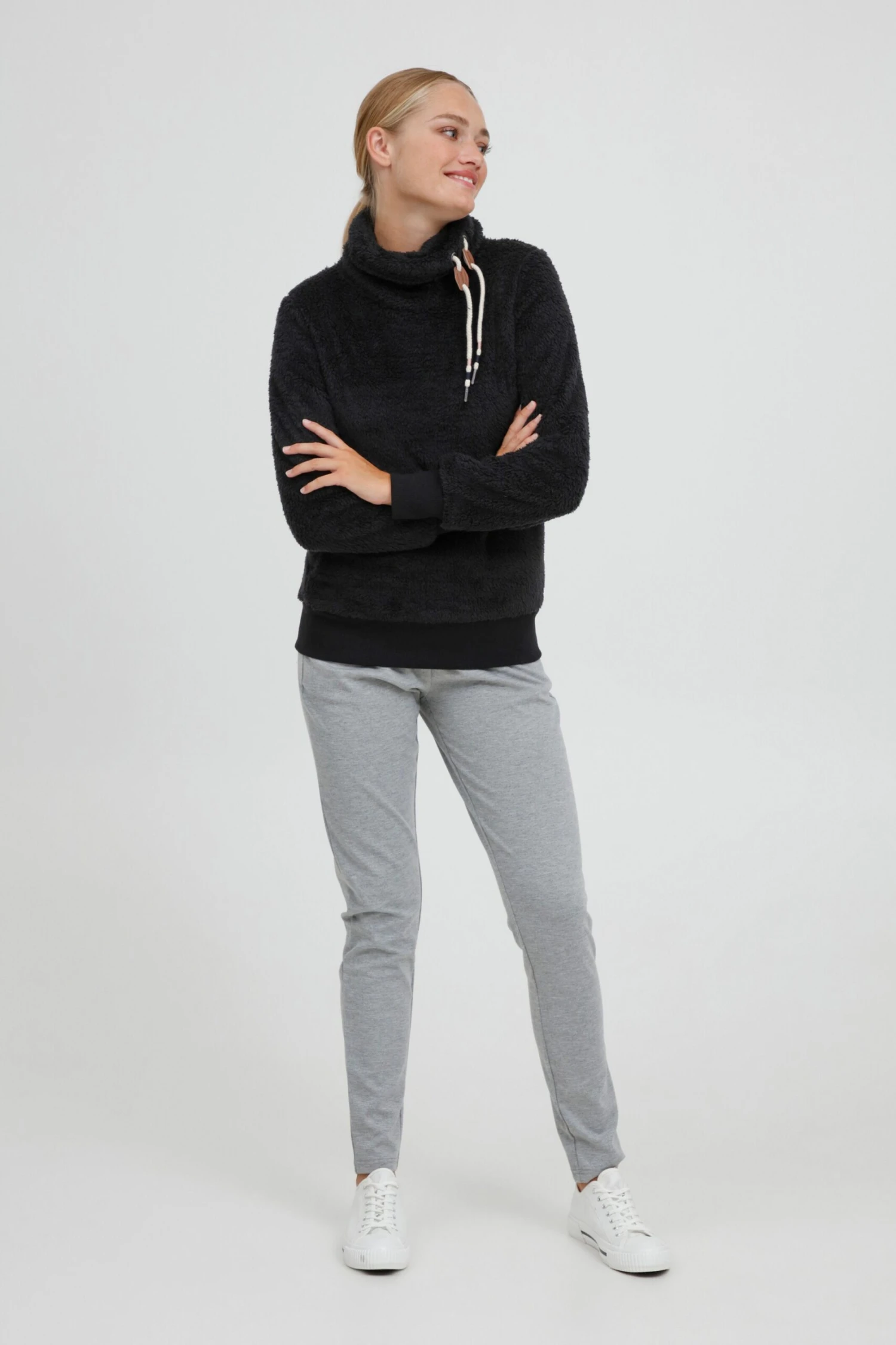 OXMO Pullover Fleecepullover ANNIKI Frauen Schwarz