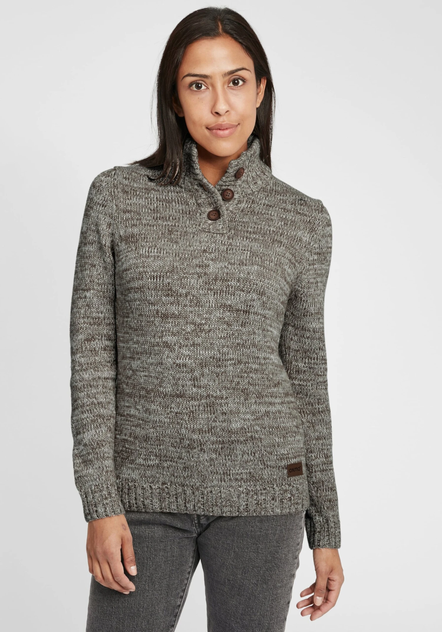 OXMO Rollkragenpullover Strickpullover Philicita Frauen Grau