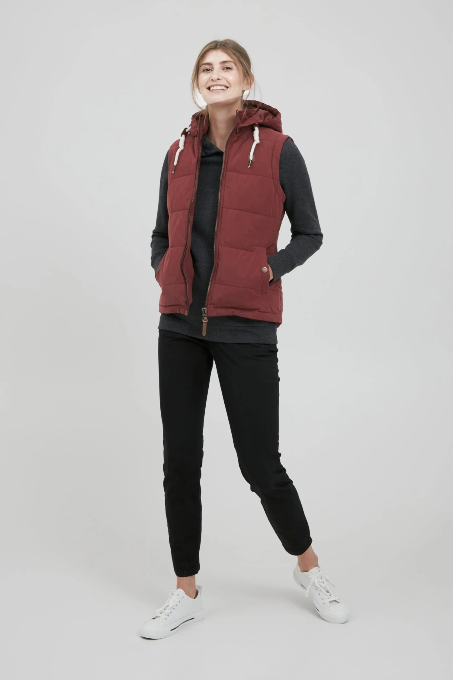 OXMO Westen Kurzweste Lew Frauen Weinrot